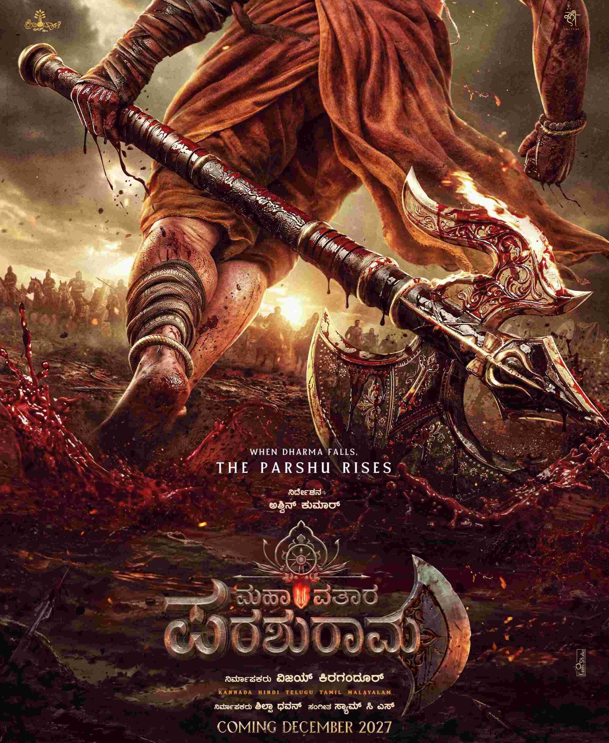 When Dharma falls, The Parashu Rises is produced by Vijay Kiragandur in Kannada, Hindi, Telugu, Tamil and Malayalam languages. Shilpa Dhwan is co producer, Sam C S is the music composer of another whopping budget cinema ‘Mahavatara Parashurama’.