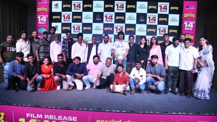 Director Amol Patil said the story is entirely set in Vijayapur and highlights North Karnataka elements. He confirmed the release on November 14. Lead actor Pruthvi Shamanur said the teaser and songs have received good response and that many reels are being created using the songs. He thanked his team and the guests who attended.